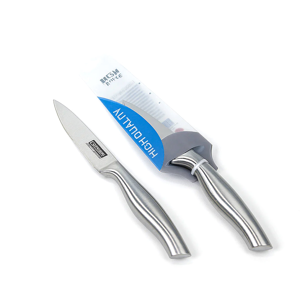 A versatile stainless steel kitchen knife designed for durability and everyday use. With its sharp blade and ergonomic handle, this knife is perfect for peeling, slicing, and prepping smaller fruits, vegetables, and herbs. Its sleek design and high-quality finish make it an essential tool for every kitchen.