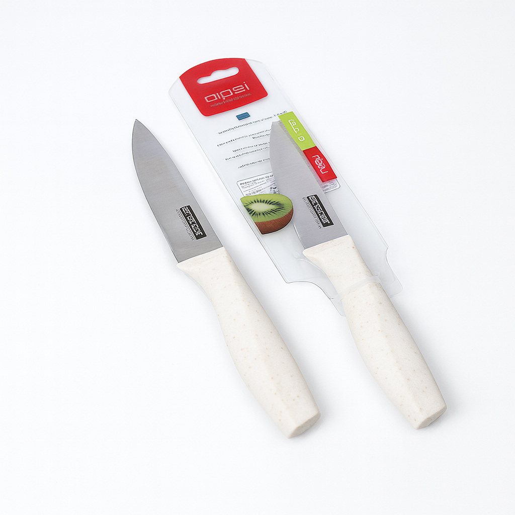 A sleek and durable stainless steel paring knife with a modern white handle, designed for everyday kitchen tasks. Perfect for peeling, trimming, and slicing small fruits, vegetables, and herbs, this knife combines sharp performance with stylish design. Lightweight and easy to handle, it’s an essential tool for precision cooking.