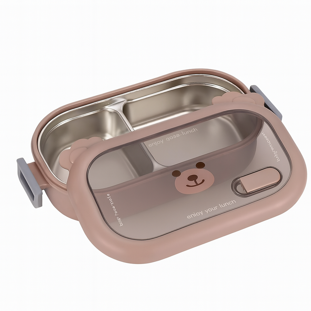 Food-grade stainless steel inner tray for safe, hygienic meal storage.