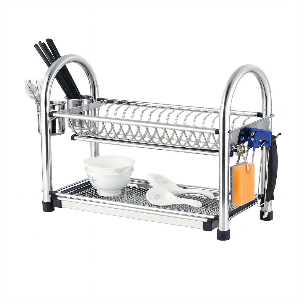 Keep your kitchen organized and efficient with this 21-Inch Stainless Steel Double-Layer Plate Rack, designed for modern homes that value both style and practicality. Featuring a sleek, rust-resistant stainless steel frame, this two-tier rack offers ample space for drying plates, bowls, cups, and utensils while maintaining a clean countertop.