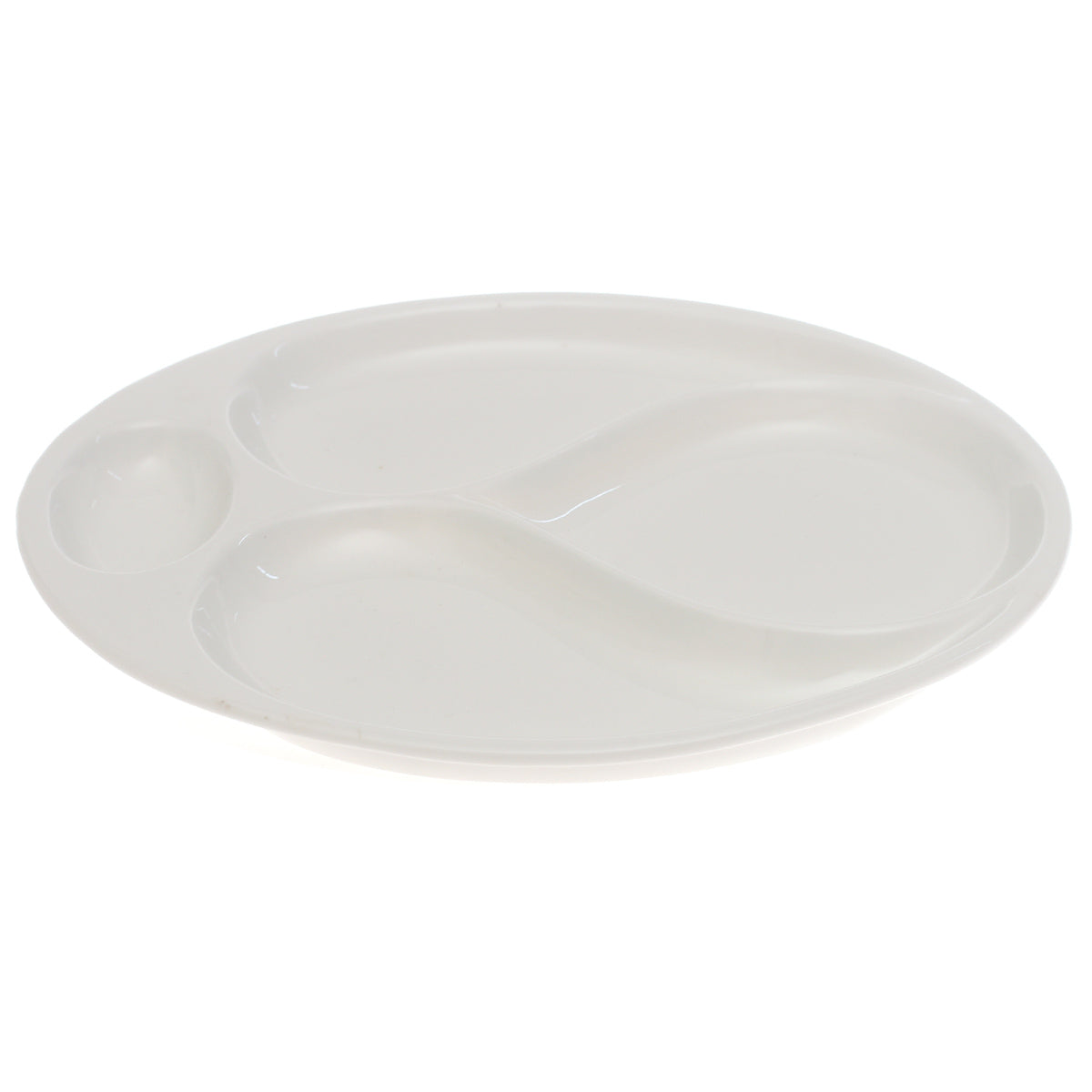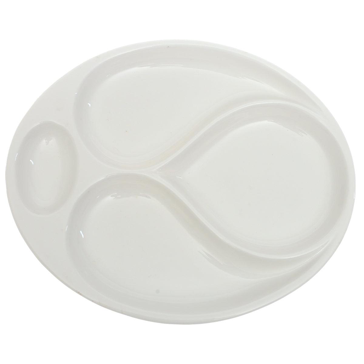 Serve in style with the 28×24 cm 4-division Symphony plate, designed for elegant presentation and everyday convenience. Featuring a smooth white finish and fluid, curved dividers, this plate allows you to separate snacks, starters, condiments, or sides neatly on a single platter. Its refined shape and minimalist design make it ideal for modern dining tables, buffets, and special gatherings.