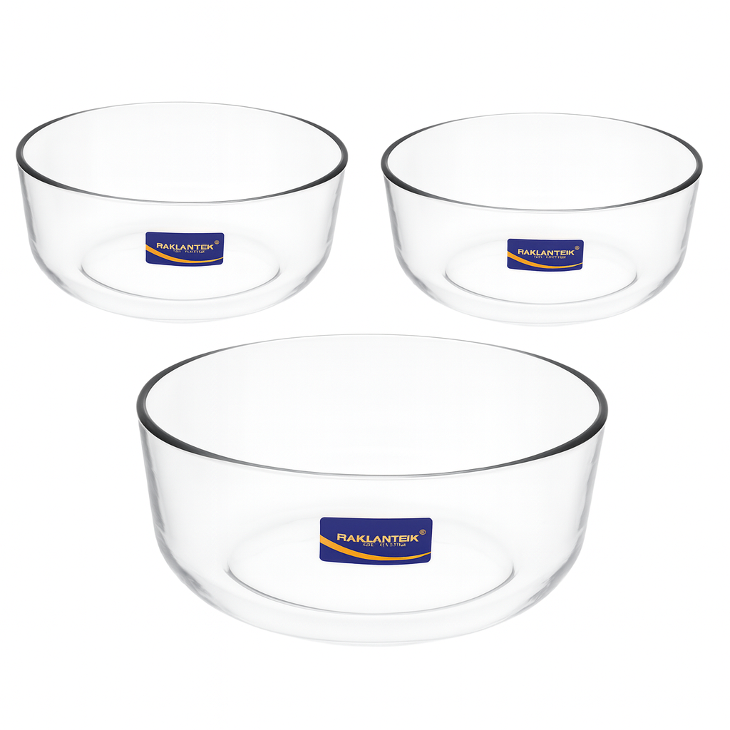 3-Piece Clear Glass Bowl Set – 1215 ml Durable Multi-Purpose Mixing & Serving Bowls