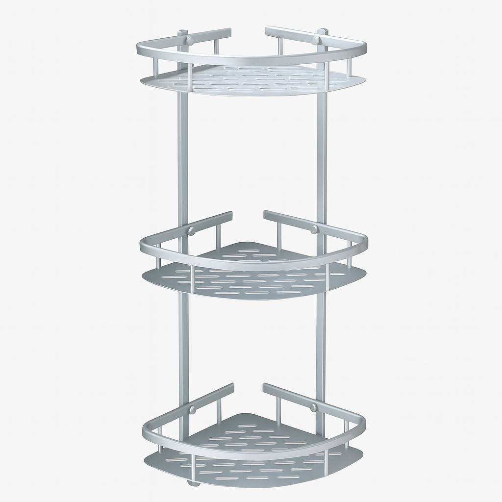 Save space and stay organized with this 3-layer aluminum corner rack, perfect for shampoos, soaps, and toiletries. Its rustproof design and quick-drain shelves keep your bathroom clean, dry, and clutter-free.