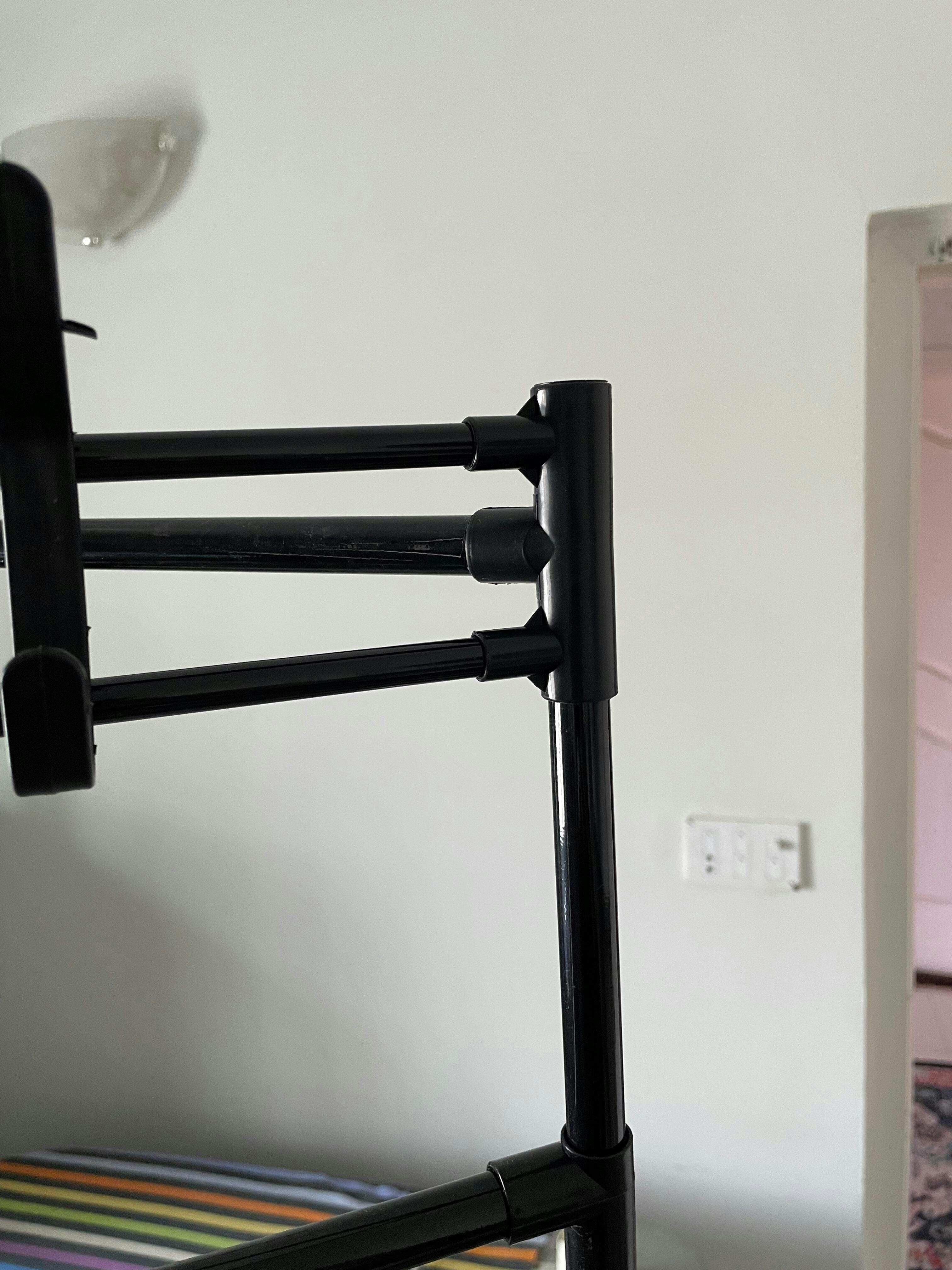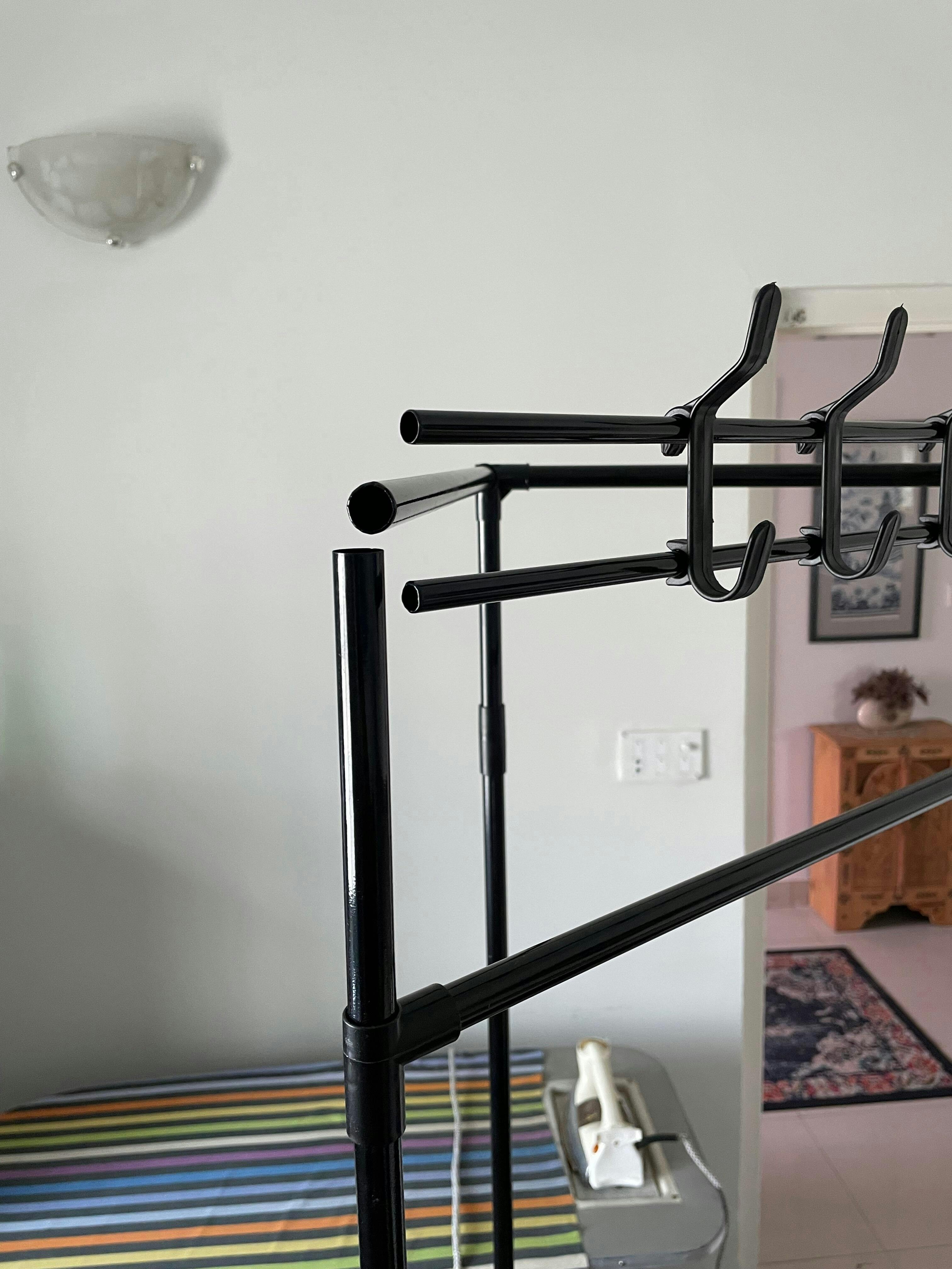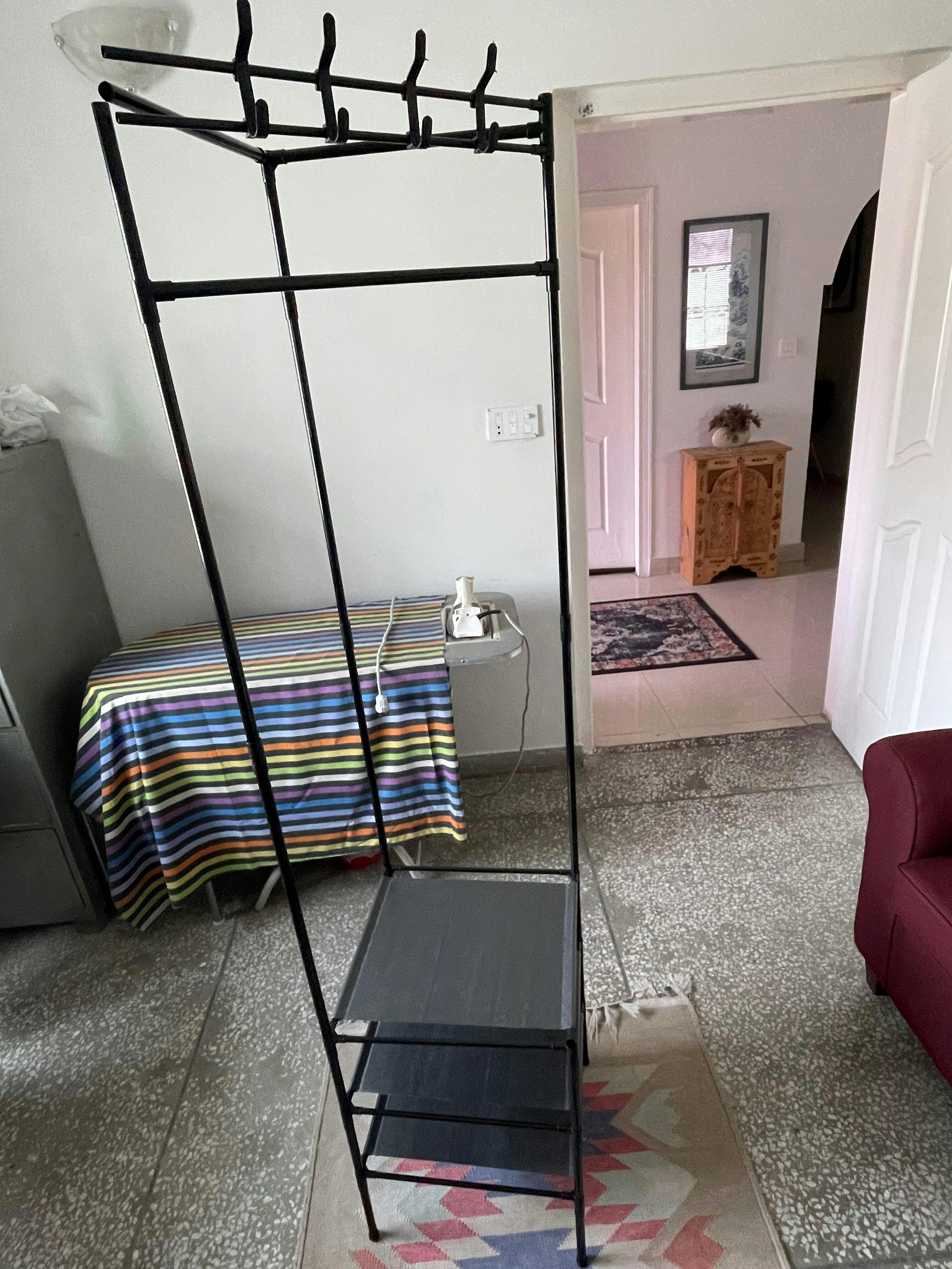 3-Tier Corner Coat Rack – Clothing Organizer with Hanging Rod & Storage Shelves A space-saving corner coat rack designed to keep your clothes, shoes, and daily essentials neatly organized. It features a sturdy hanging rod for shirts and outerwear, multiple hooks for scarves and bags, and three spacious tiers for folded items, baskets, or shoes—perfect for bedrooms, entryways, and small spaces.