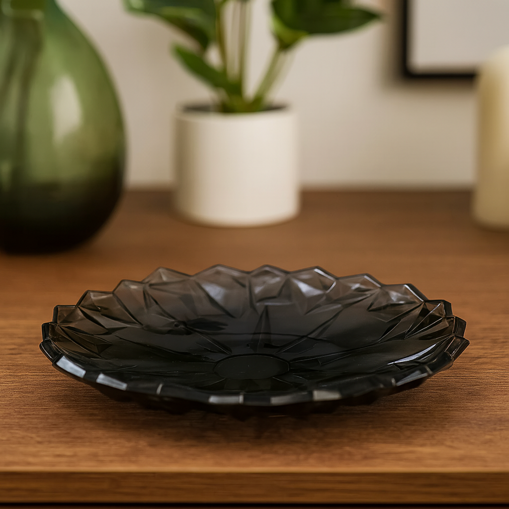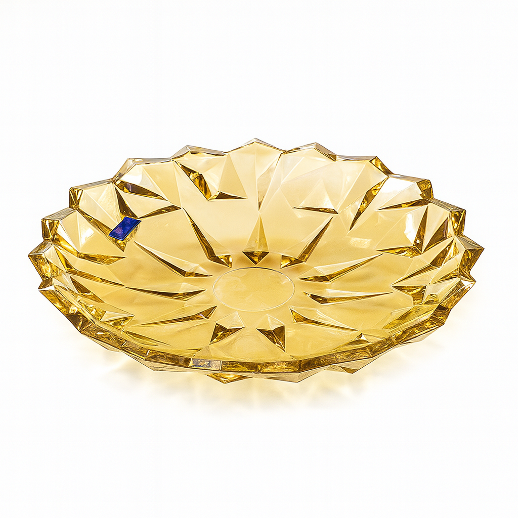 337 mm Premium Coloured Serving Plate – Crystal-Cut Design in Gold & Silver for Cakes, Snacks & Décor (1 Pc)