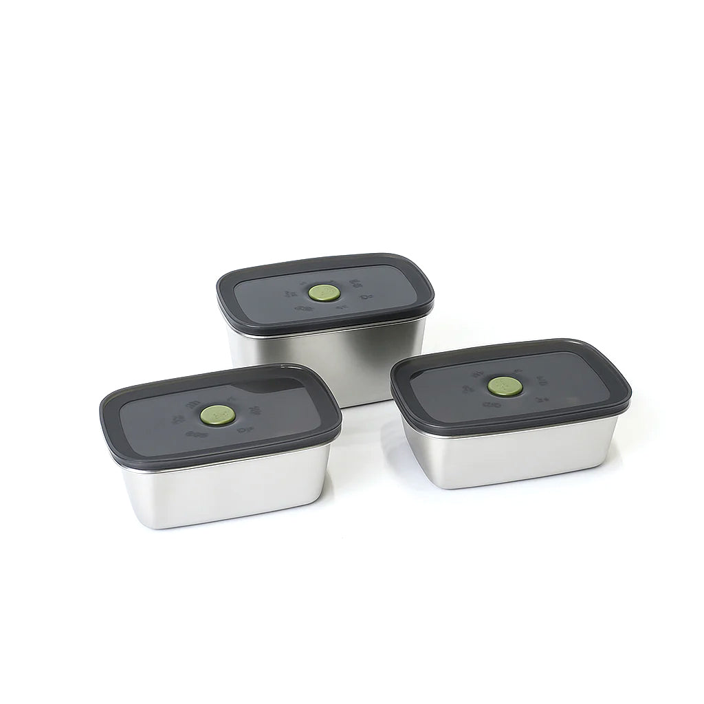 Keep your food fresh and your kitchen organized with this large capacity stainless steel storage box set. Designed for functionality and durability with an airtight seal to lock in freshness.