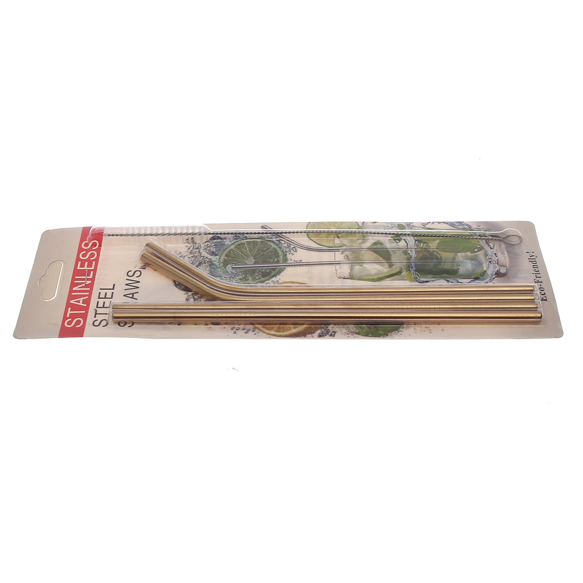 Upgrade your sipping experience with this elegant 4-piece Gold Stainless Steel Straw Set. Designed for sustainability and style, these reusable straws are perfect for smoothies, cocktails, iced coffee, and everyday beverages. Crafted from premium stainless steel with a sleek golden finish, they add a touch of sophistication to any drink while helping reduce single-use plastic waste. Each set includes two straight and two bent straws, along with a cleaning brush for easy maintenance. Ideal for home, travel, or gifting to eco-conscious friends and family.
