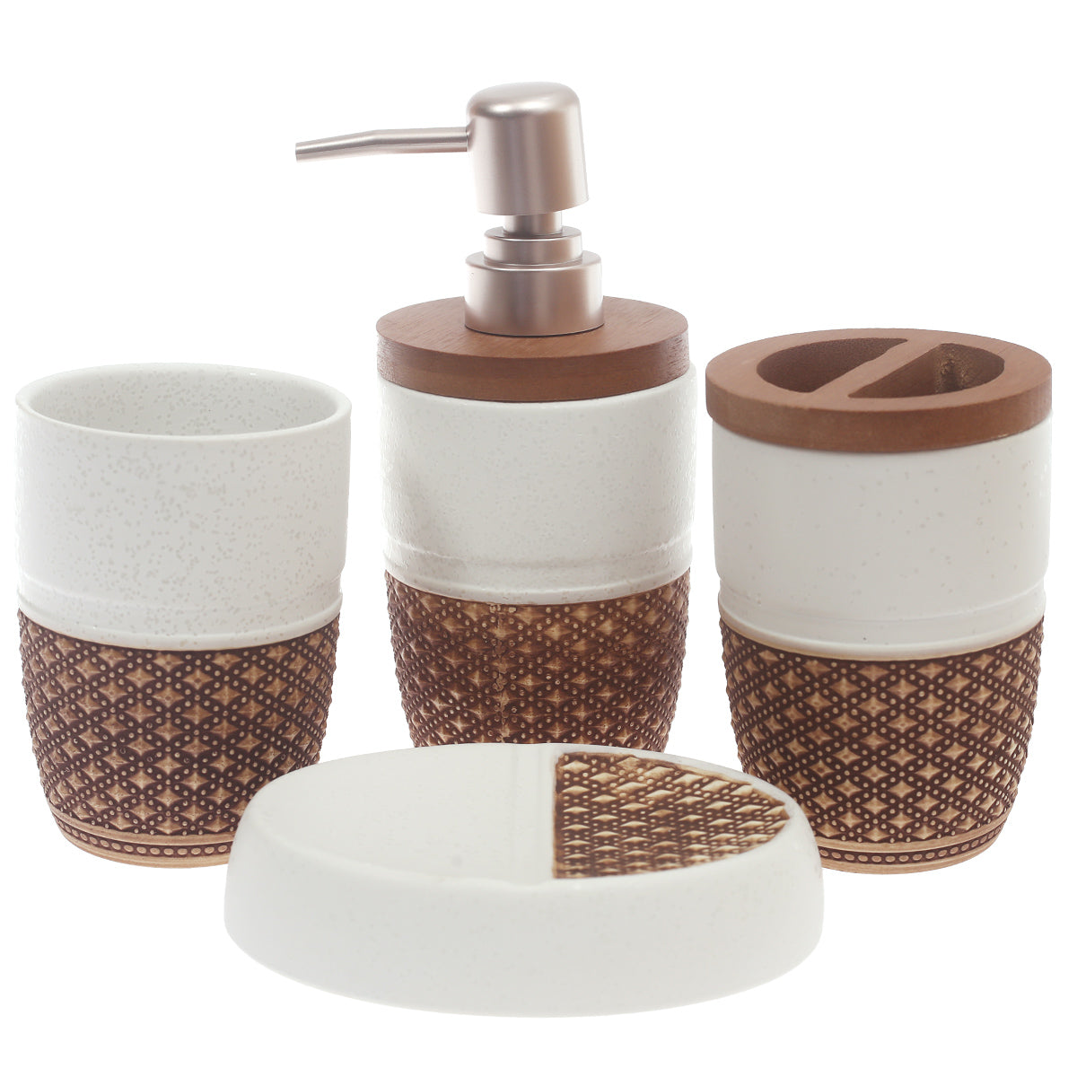 4Pcs Bath Set Brown & White 10 X 9 Inch Gs-16