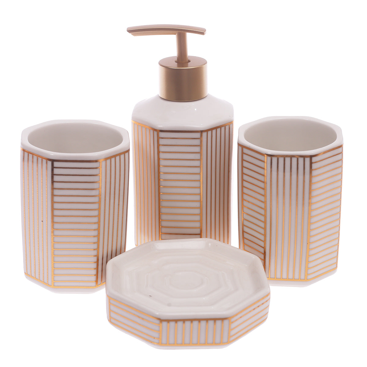 4Pcs Bath Set White & Gold 9 X 8 Inch Gs-18