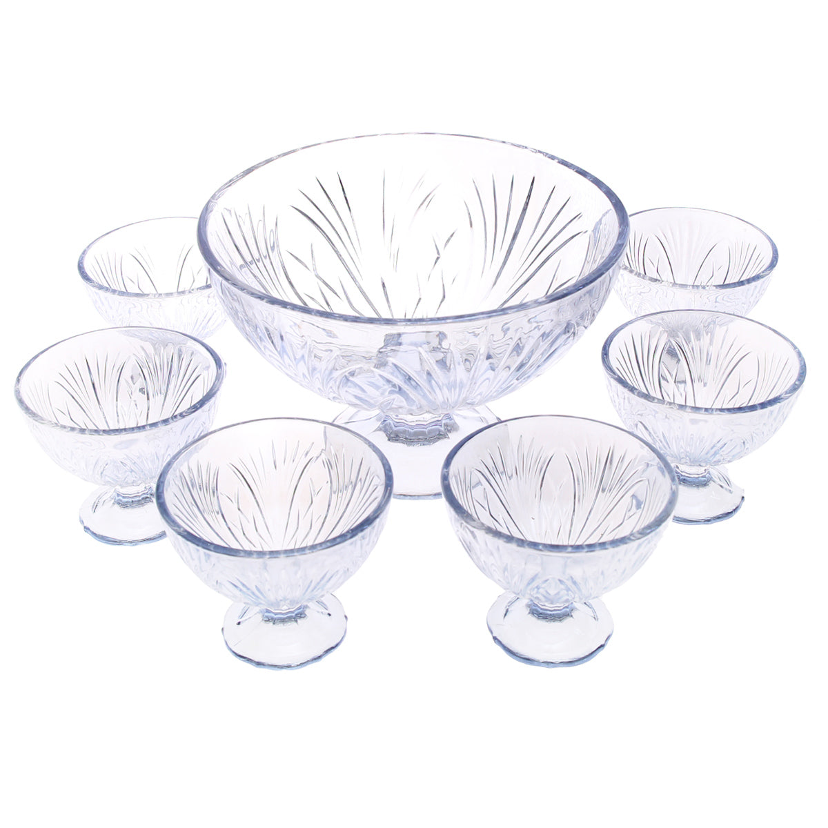 Serve your favorite desserts in style with this 7-Piece Premium Glass Dessert Bowl Set, featuring a stunning crystal-cut design that adds elegance to every occasion. This set includes 1 large serving bowl and 6 matching small dessert bowls, ideal for serving ice cream, custard, pudding, fruit salad, or mousse. The clear glass design enhances presentation, allowing your desserts to look as delightful as they taste — perfect for family gatherings, festive dinners, or everyday indulgence.