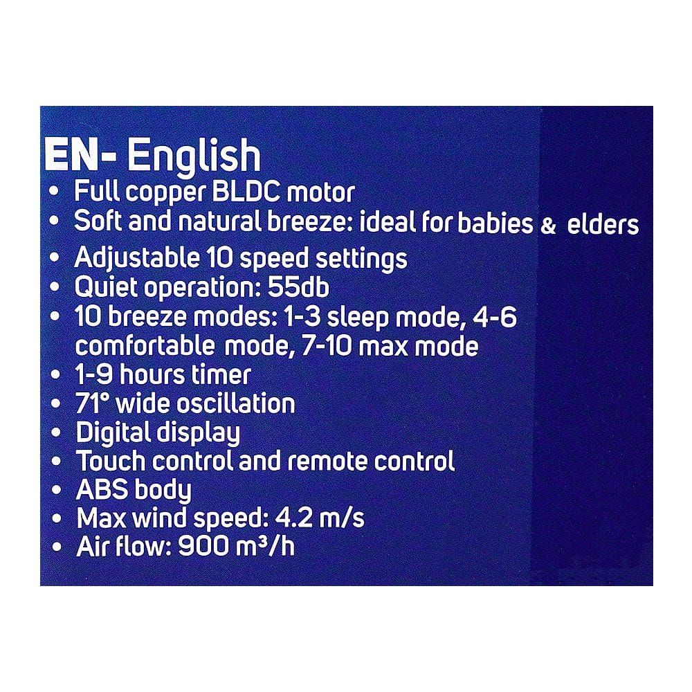 Enjoy smooth, safe, and whisper-quiet airflow with the Alpina SF-5000 Electric Bladeless Fan, designed for modern living spaces that value comfort and efficiency. Powered by a full copper BLDC motor, this bladeless fan produces a soft, natural breeze that’s gentle enough for babies and elders while delivering powerful circulation when needed. With 10 adjustable speed settings, multiple breeze modes, and wide 71° oscillation, the SF-5000 ensures even airflow throughout the room. Its sleek ABS body, digital display, and touch plus remote control make it a stylish, user-friendly cooling solution for bedrooms, offices, and family areas.