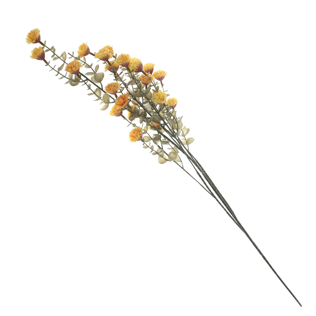 Brighten your interiors with the cheerful charm of this Artificial Yellow Blossom Flower Stick (NGI FC7084). Designed with clusters of sunny yellow blooms and lifelike greenery, this faux floral stem brings warmth and freshness to any space. Perfect for home decoration, wedding arrangements, festive centerpieces, or DIY floral crafts, it adds a lively pop of color that lasts all year without fading or wilting. Whether displayed alone or combined with other stems, it enhances any décor style with its radiant look.