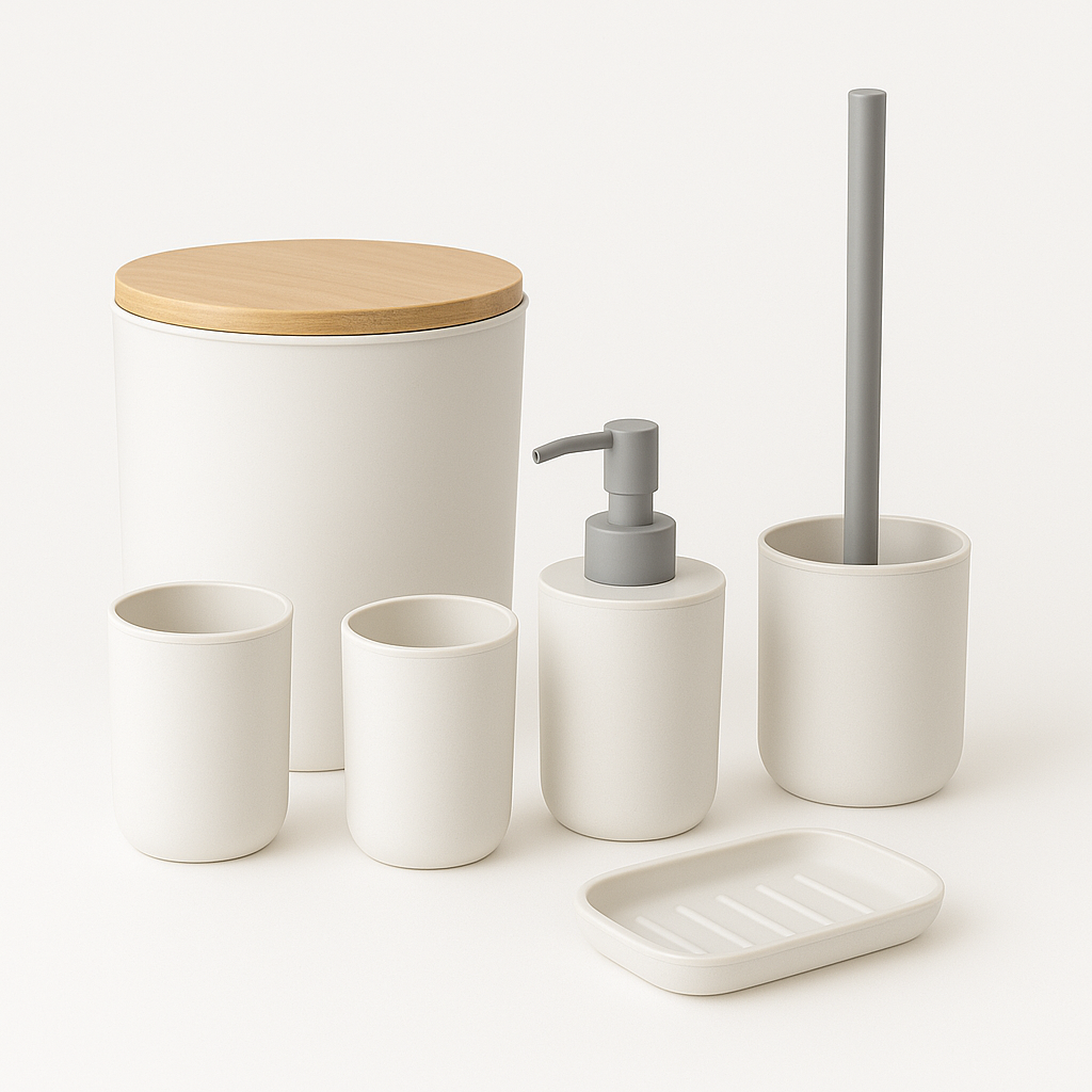Transform your bathroom with this 6 Pcs ABS Round Bathroom Set, designed for style, functionality, and everyday convenience. The modern matte finish and coordinated round shapes give your space a clean, elegant look while keeping essentials neatly organized.