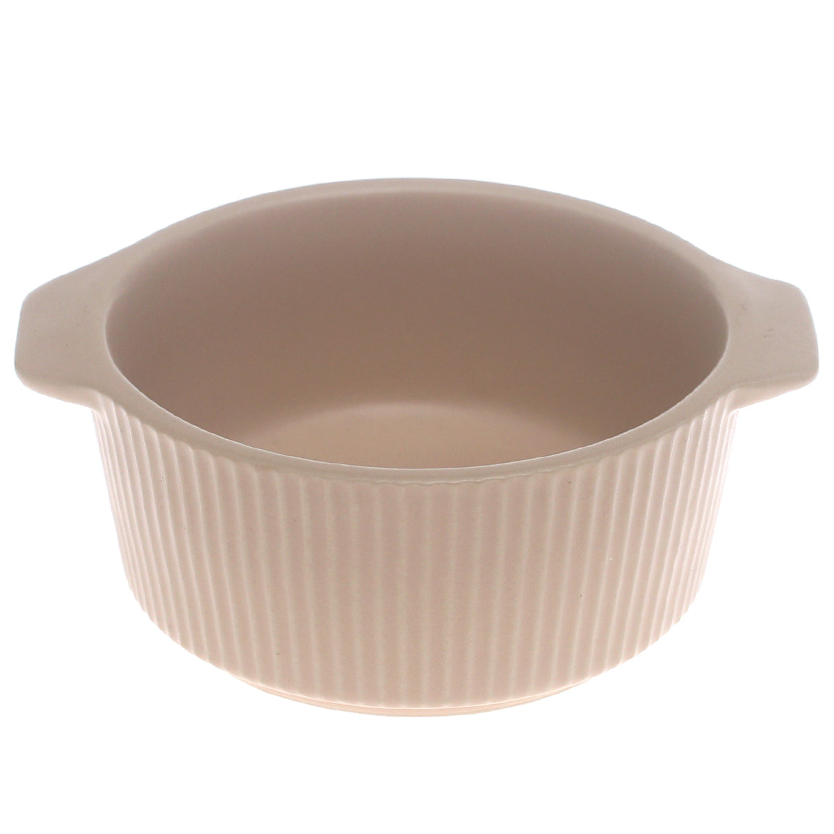 Add subtle elegance to your table with this 3.5-inch beige ceramic sauce dish, designed for both style and functionality. Featuring a soft neutral glaze and vertical ribbed texture, this compact dish brings a refined, minimalist charm to any dining setup. The small side handles offer easy grip and added visual appeal, making it perfect for serving sauces, dips, condiments, or small accompaniments. Ideal for everyday meals or curated table presentations, this piece blends seamlessly with modern, classic, and rustic dinnerware collections.
