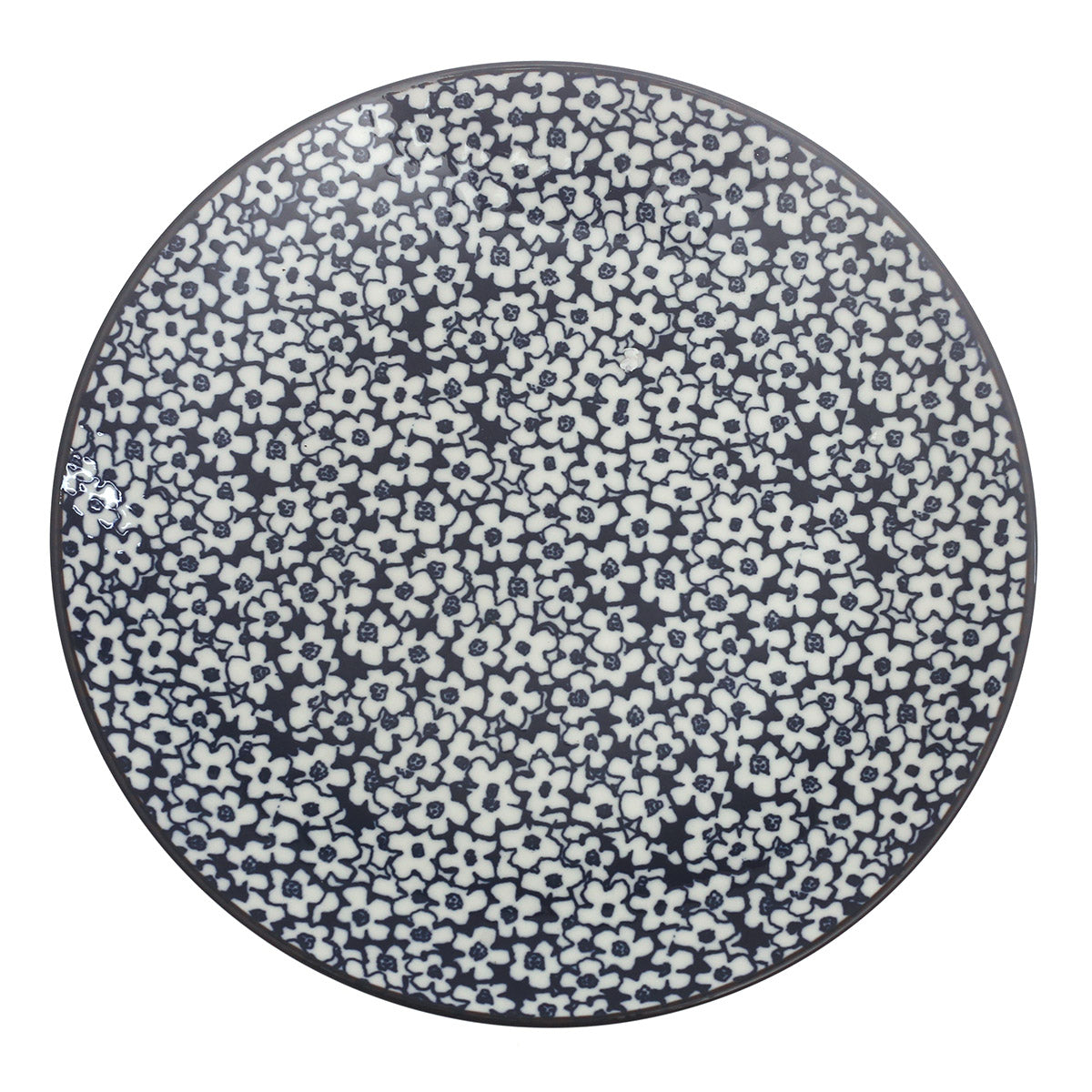 Add a touch of artistic charm to your table with this 8.5-inch ceramic quarter plate featuring an elegant black, blue, and white floral pattern. Designed with a shallow, gently curved profile, this plate showcases an intricate all-over motif that brings visual interest and sophistication to everyday dining. Perfectly sized for snacks, desserts, breakfast items, or light meals, it blends contemporary style with timeless craftsmanship, making it suitable for both casual use and special occasions.