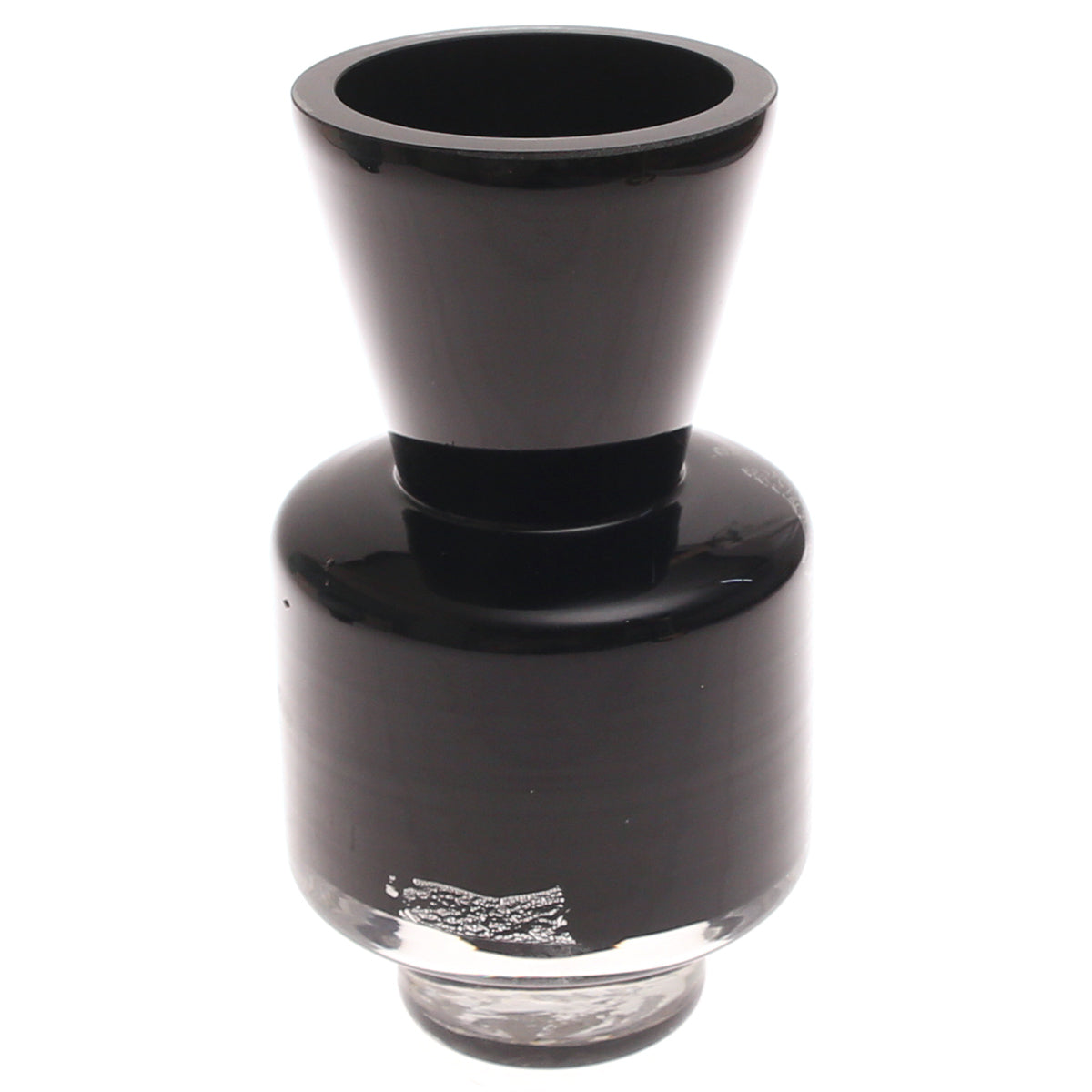 A sleek black glass vase with a clear white base pattern, giving a bold and modern look. Perfect for Pakistani homes—great for lounges, consoles, coffee tables, and minimalist décor setups.