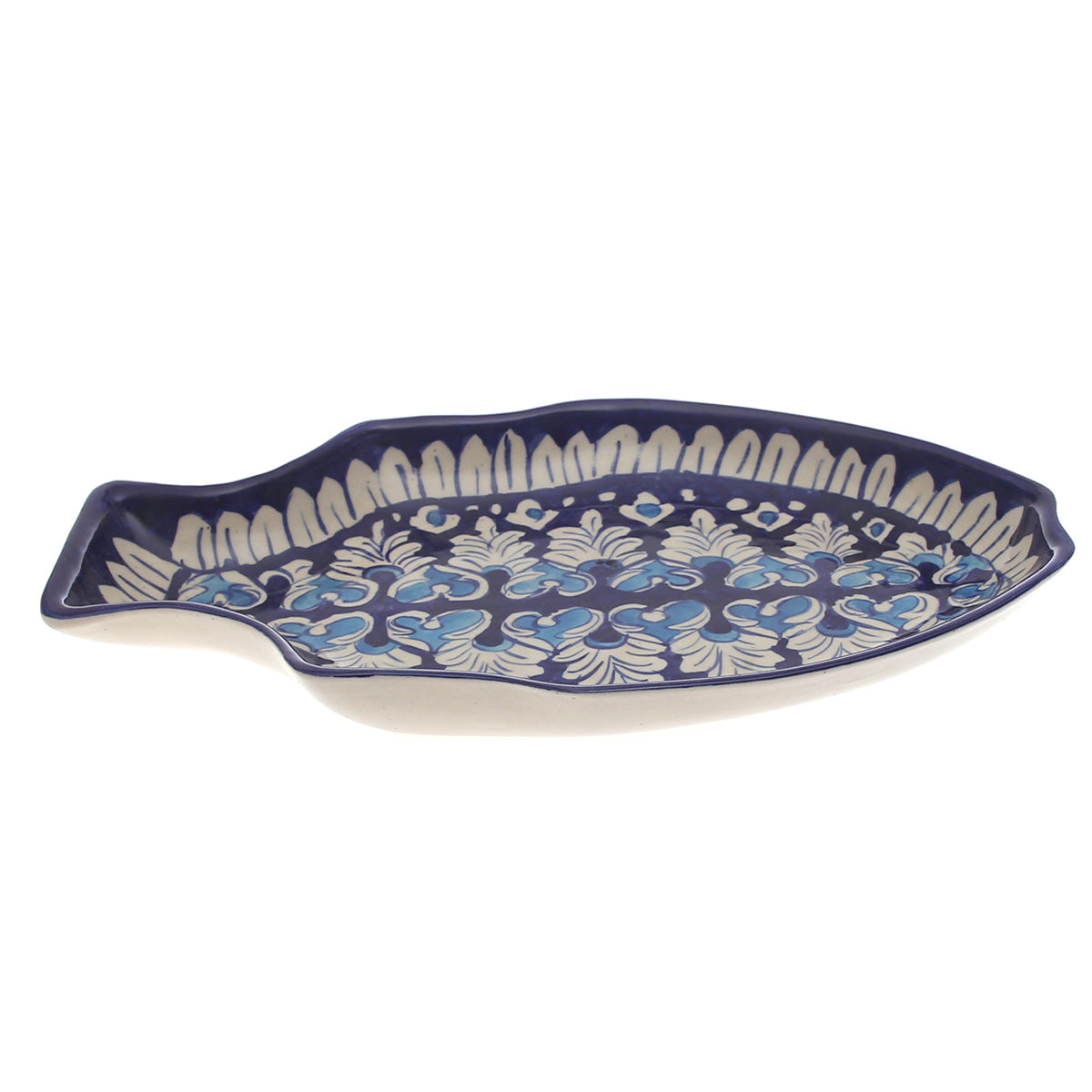 Elevate your dining experience with the Blue Pottery Fish Platter (Large), a stunning handcrafted ceramic serving dish that combines artistry with functionality. Featuring a unique fish-shaped design and traditional blue-and-white floral patterns, this platter is perfect for serving seafood, appetizers, snacks, or festive meals. A true conversation starter, it also doubles as a decorative centerpiece for your dining table.