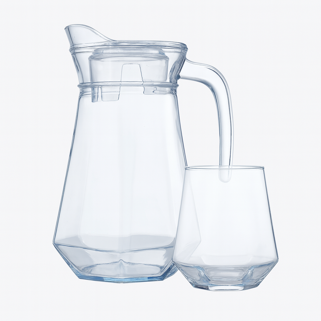 Brighten your dining experience with this elegant blue-tinted 7-piece water set, featuring a stylish 1.4 L jug and six matching 340 ml tumblers. The soft blue tone adds a refreshing, modern touch, while the faceted geometric design creates a premium look suitable for both daily use and special occasions. Perfect for chilled drinks, this set enhances any kitchen, dining table or guest setup with its clean, contemporary style.