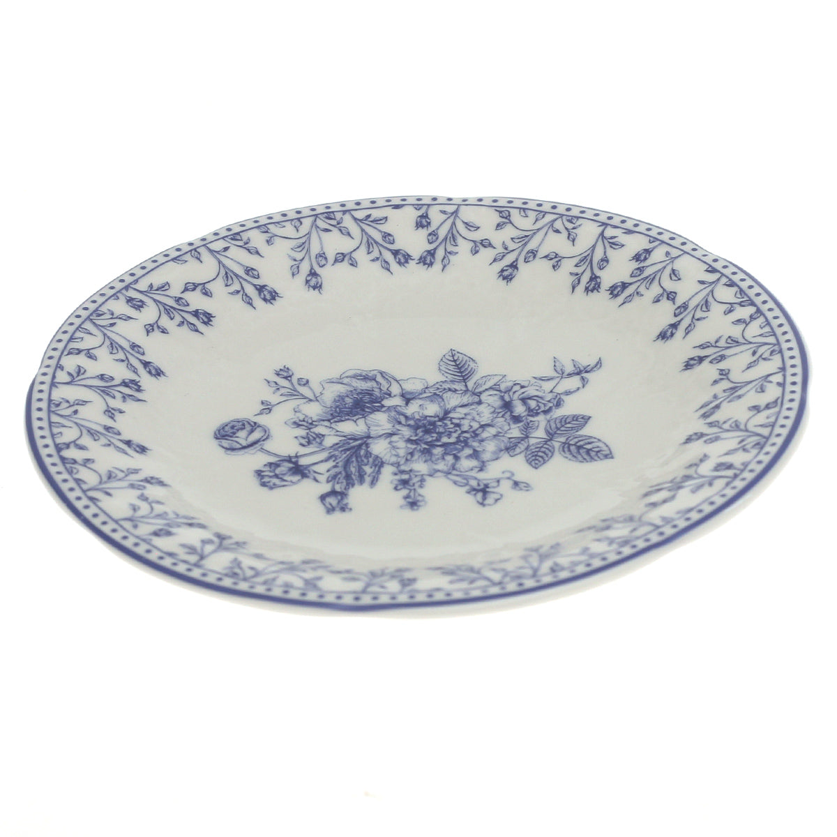 Add a touch of timeless elegance to your table with this Blue & White Floral Side Plate. Featuring a delicate botanical motif at the center and a finely detailed border, this plate reflects classic blue-on-white ceramic styling that never goes out of fashion. Its refined design makes it suitable for both everyday use and special occasions.