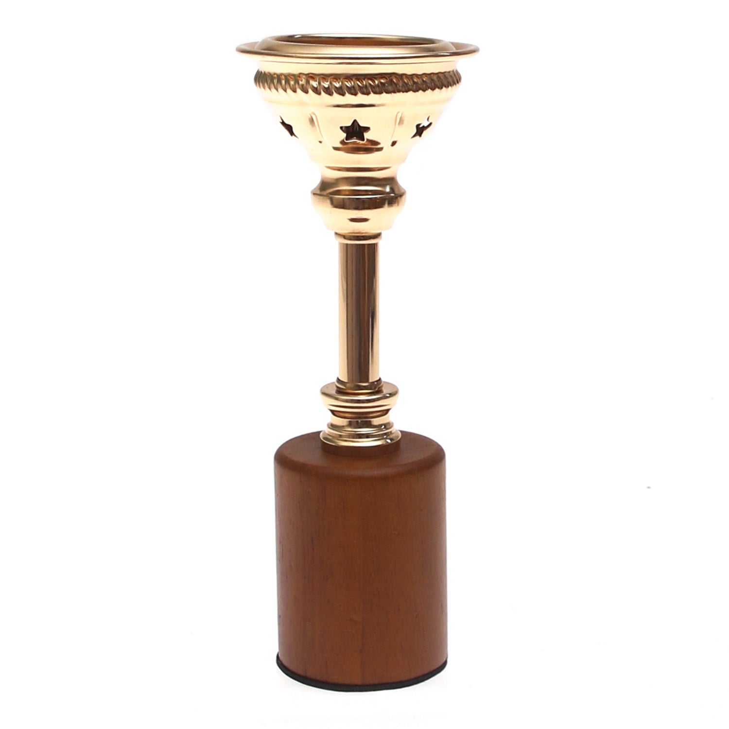 Bring warm, timeless style to your home décor with this Brown Wood & Gold Pillar Candle Holder, designed to combine classic craftsmanship with elegant metallic detailing. The rich wooden base adds natural warmth and stability, while the polished gold holder features refined cut-out star patterns and textured accents for added visual charm. Compact yet eye-catching, this small pillar candle holder is perfect for tabletops, shelves, mantels, and bedside décor, blending effortlessly into traditional, rustic, or contemporary interiors.