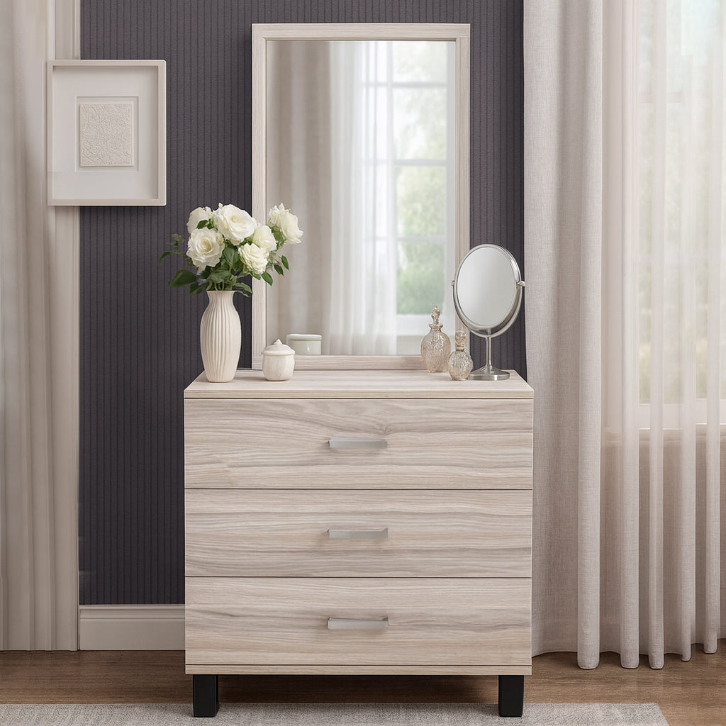 This beautiful dresser with mirror and drawers is perfect for any bedroom. It offers plenty of storage space, with a mirror and 3 drawers. The drawers feature a range of organizational features, and they open and close smoothly. The dresser has a classic, timeless look.