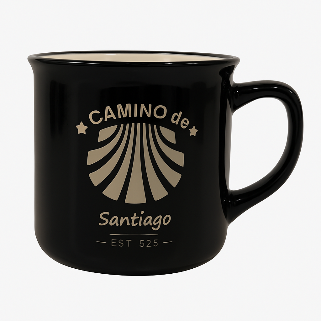 Celebrate the spirit of adventure with the Camino de Santiago Enamel-Style Ceramic Mug, inspired by the legendary pilgrimage route through Spain. Available in black, each mug features the iconic Camino scallop shell emblem and vintage lettering, printed on a glossy enamel-look ceramic body. Perfect for coffee, tea, or hot chocolate, this mug brings a touch of wanderlust and cultural charm to your daily routine.
