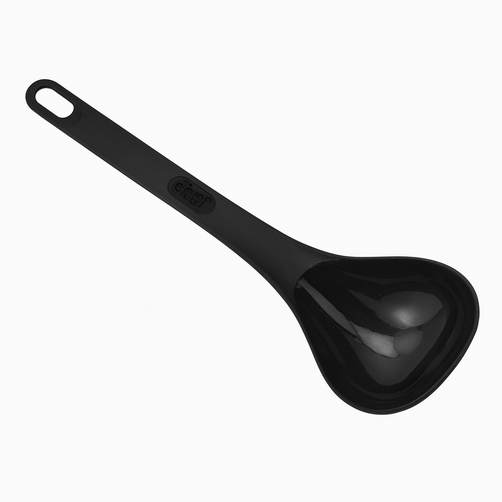 Crafted in sleek black, this heat-resistant ladle is perfect for both home kitchens and professional cooking environments, offering long-lasting performance without scratching non-stick cookware.