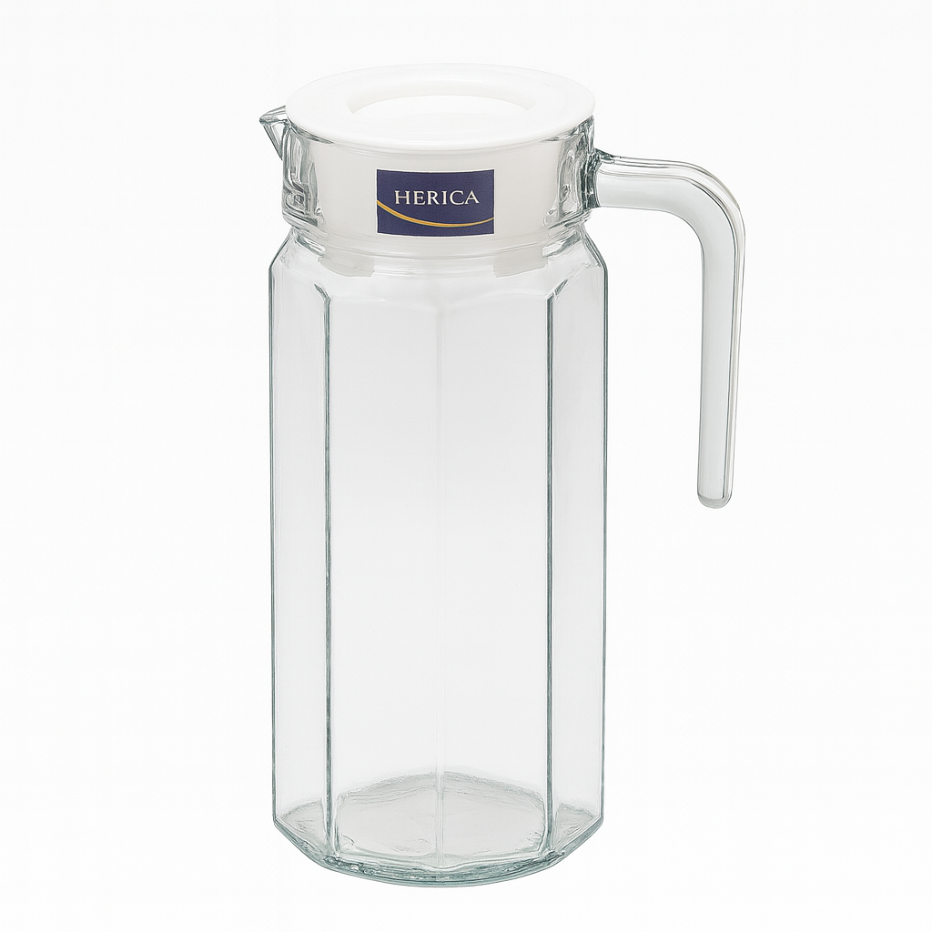 Clear 1100 ml Glass Jug with Handle & White Lid – Stylish Pitcher for Water, Juice & Table Serving