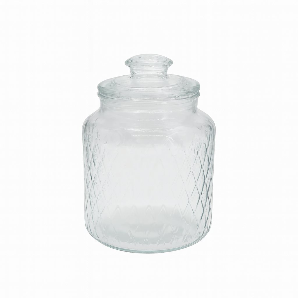 Keep your pantry beautifully organised with this elegant 2200 ml clear glass storage jar, featuring a stylish diamond-embossed pattern and a matching airtight lid. Made from thick, high-clarity pressed glass, it’s perfect for storing snacks, dry ingredients and household essentials while adding a decorative touch to your countertop or shelves. Durable, functional and visually appealing, this jar blends everyday practicality with timeless sophistication.