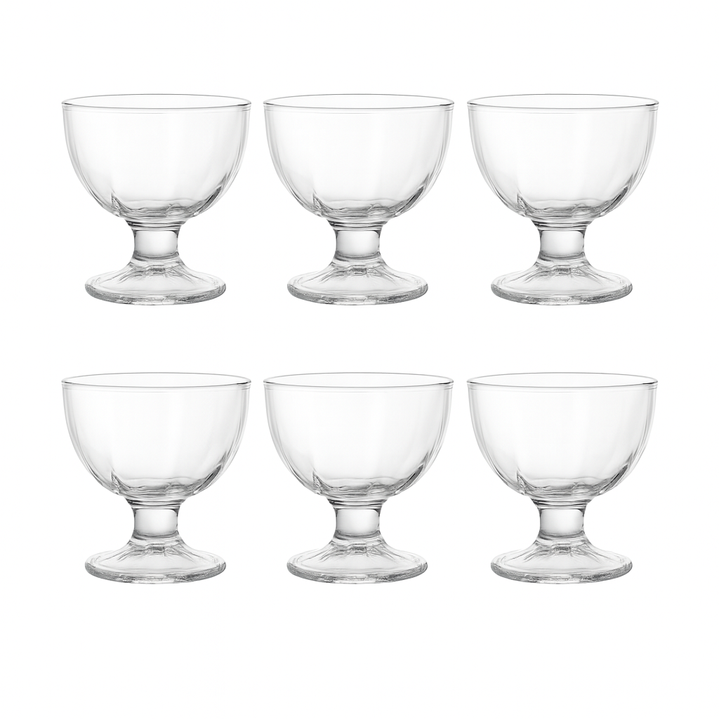 Serve your desserts with classic elegance using this 6-piece set of 210 ml clear glass ice cream cups, designed with a timeless rounded bowl and sturdy footed base. The high-clarity pressed glass beautifully highlights layers, colours and textures—perfect for creating café-style presentations at home. Ideal for sundaes, fruit salads, jelly, mousse, custard or chilled desserts, this set combines durability, style and everyday practicality.