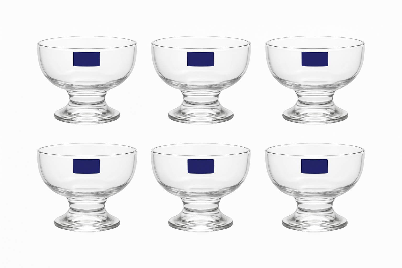Serve desserts with style using this elegant 6-piece set of 225 ml clear glass ice cream cups, designed with a rounded bowl and sturdy footed base for a premium presentation. The transparent pressed glass enhances the visual appeal of layered desserts, making every serving look café-quality. Ideal for home entertaining, dessert counters, cafés or gifting, these cups offer the perfect blend of charm, durability and everyday usefulness.