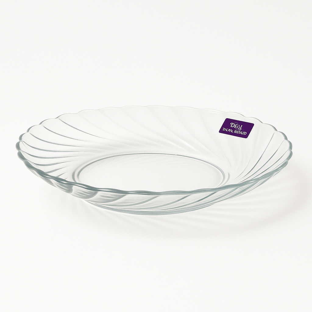 Clear Swirl-Pattern Pressed-Glass Soup Plate Set – 6 Pieces, 234 mm Diameter