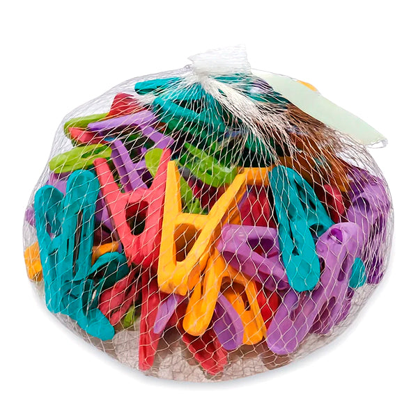 Make laundry days easier with this Cloth Clip Net Bag, filled with durable, multi-colored clothespins designed to keep clothes secure while drying. Packed in a convenient mesh bag for easy storage and portability, these clips are perfect for hanging clothes, towels, bedsheets, and more. Their bright colors not only add a cheerful touch to your laundry routine but also make them easy to spot and grab when needed.