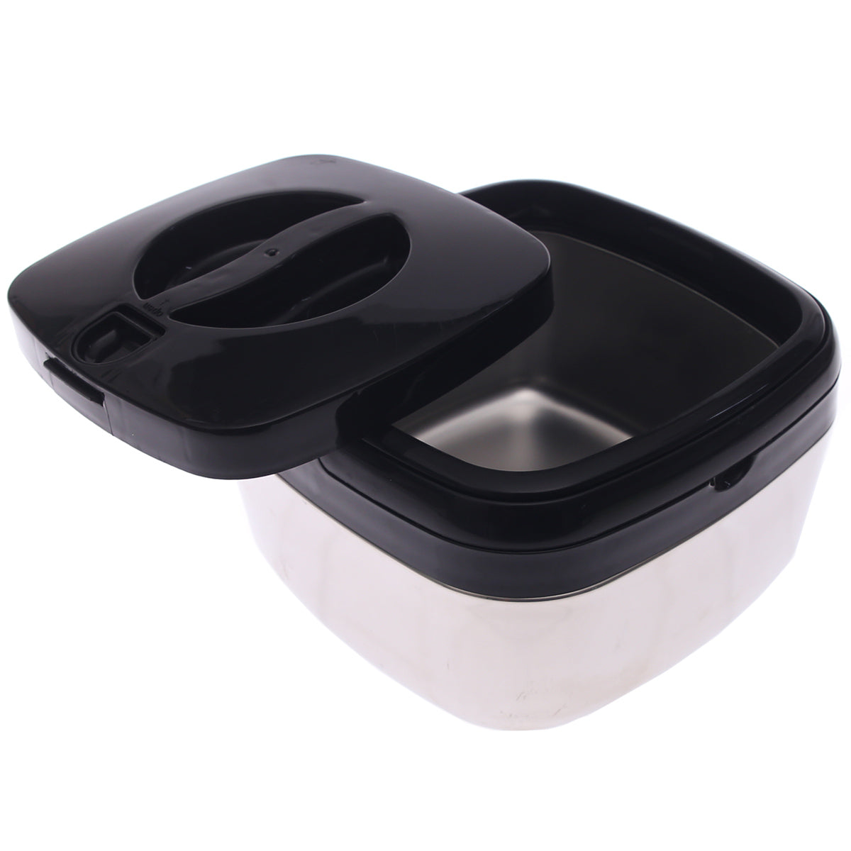 Keep your favorite dishes warm and stylishly served with this Compact Square Hot Pot (Small Size). Crafted with a sleek stainless steel body and a glossy black insulated lid, this food warmer blends elegance with everyday practicality.