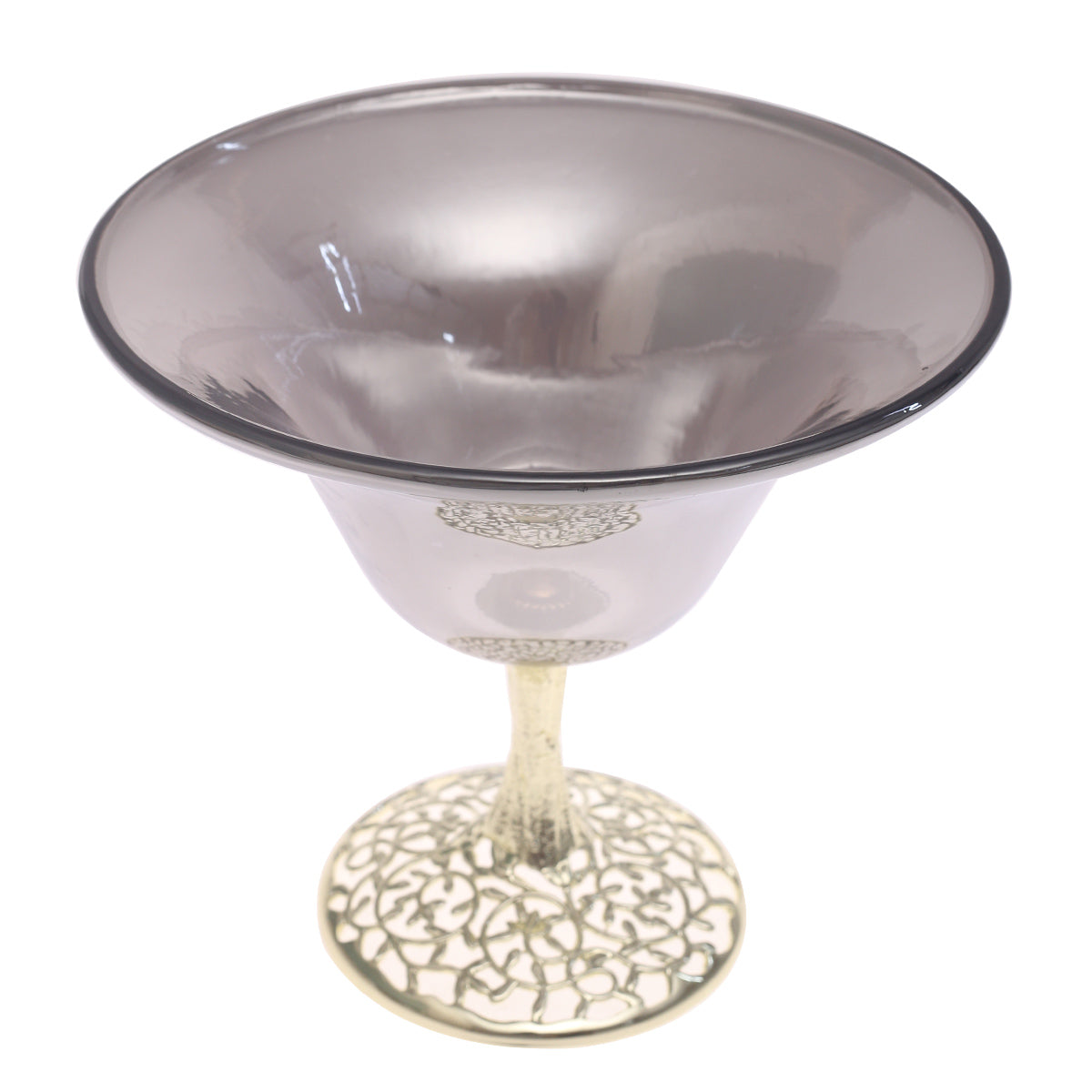 Make a bold style statement with this Large Black & Silver Console Piece, designed to bring contemporary elegance to refined interiors. Featuring a wide, flared bowl in a sleek black-silver finish and supported by an intricately detailed pedestal base, this decorative accent combines modern form with classic detailing. Its reflective surface and sculptural silhouette make it an eye-catching centerpiece for console tables, dining displays, or luxury living spaces.