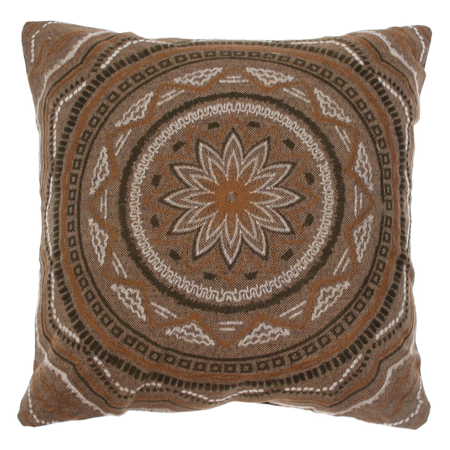 Bring warm, earthy elegance into your home with the Desert Bloom Decorative Cushion Cover. Featuring a striking mandala-inspired central motif surrounded by intricate geometric detailing, this cover blends desert-inspired tones of brown, beige, and cream to create a rich, textured visual statement. Perfect for adding a boho, rustic, or global-inspired touch, it elevates sofas, beds, accent chairs, and curated décor arrangements with artistic flair.