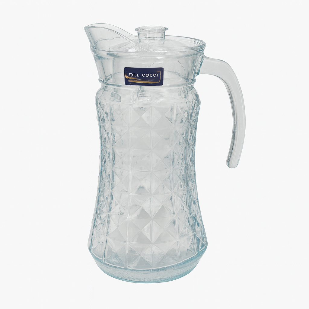 This elegant 1700 ml glass jug features a striking diamond-cut textured design that adds brilliance and grip while enhancing the overall aesthetic of your table setting. Its tall, gently tapered shape offers excellent stability, and the sturdy curved handle provides comfortable, controlled pouring. The smooth spout ensures a clean, drip-free serve, making it perfect for water, juices, iced tea, lemonade, and refreshing beverages for families or guests. Both decorative and practical, this jug is an ideal addition to modern homes, cafés, or gatherings.