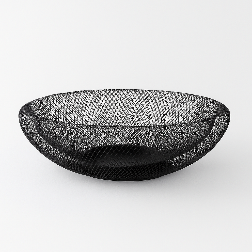 Double Base Metal Mesh Basket – Black | Modern Decorative Fruit & Storage Bowl Sleek and functional, this black double base metal basket combines minimalist design with practical storage. Its open mesh structure allows air circulation, making it perfect for storing fruits, bread, or decorative items. A stylish addition to any kitchen, dining table, or living space