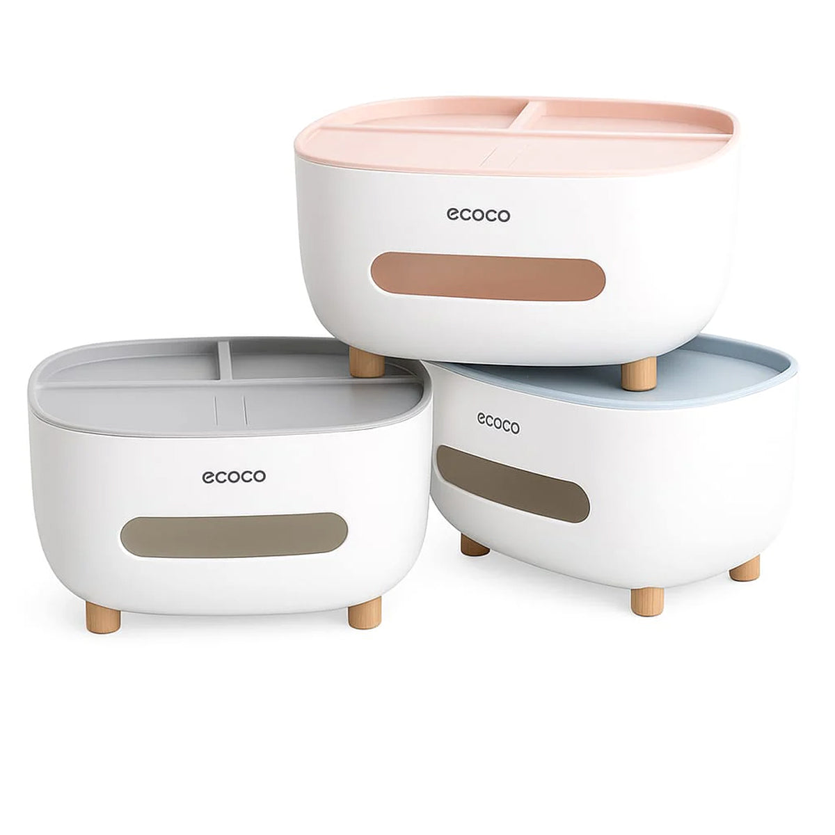 Bring elegance and functionality to your home with the ECOCO Tissue Box, a stylish and practical storage solution. Designed with a minimalist aesthetic, it features a smooth rounded body, wooden legs for stability, and a transparent window to easily check tissue levels. The top compartment includes divided sections, perfect for storing remotes, pens, cosmetics, or other small essentials. Ideal for use in the living room, bedroom, office, or bathroom, this tissue holder doubles as a multifunctional organiser to keep your space neat and tidy.