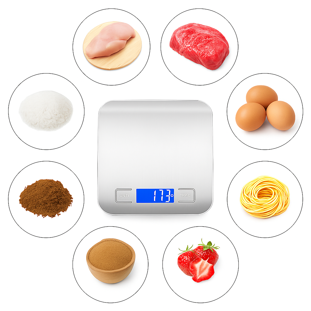 Achieve precision in your cooking and baking with this Electronic Kitchen Scale, crafted with a sleek stainless steel finish for durability and modern style. Featuring a bright LCD display and multiple unit conversions, this digital scale ensures accurate measurements for ingredients, making meal prep easier and more reliable. Perfect for home cooks, bakers, and health-conscious individuals tracking portion sizes.