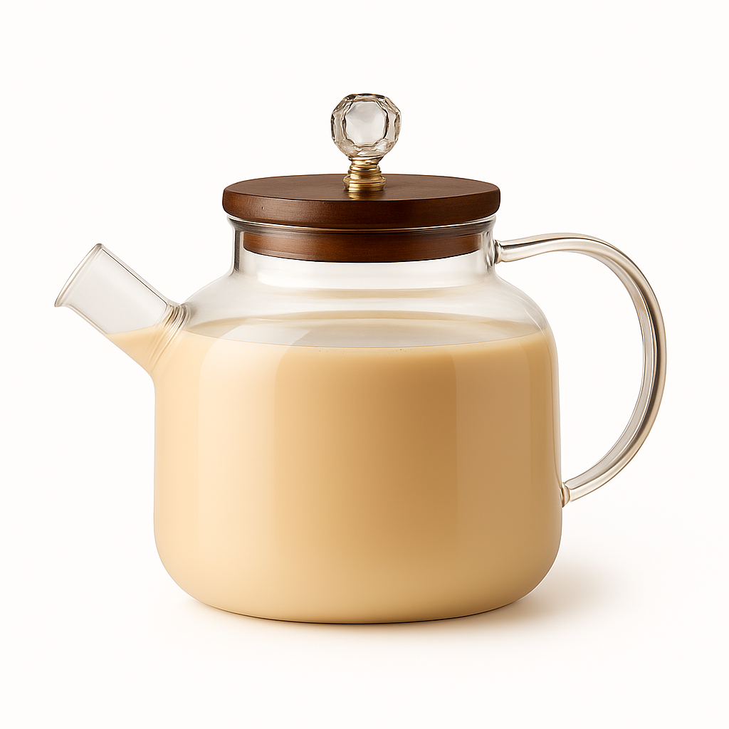 Durable heat-resistant glass with a secure wooden lid for easy pouring and serving. Suitable for hot or cold beverages.