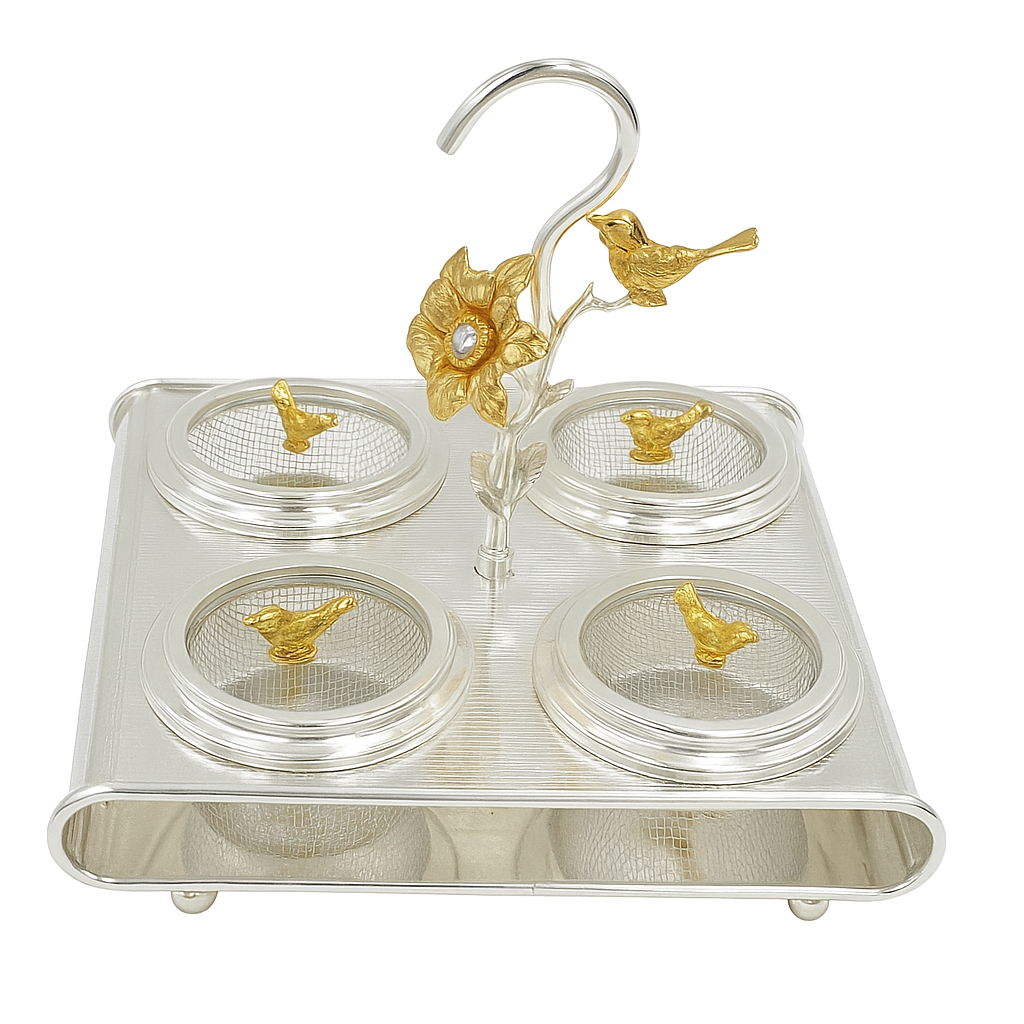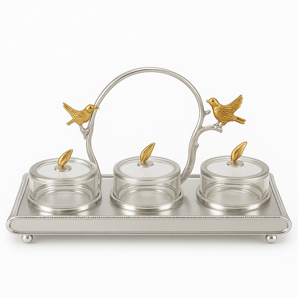 Glass inner containers with a premium silver-finished outer design. Ideal for stylish serving or gifting.