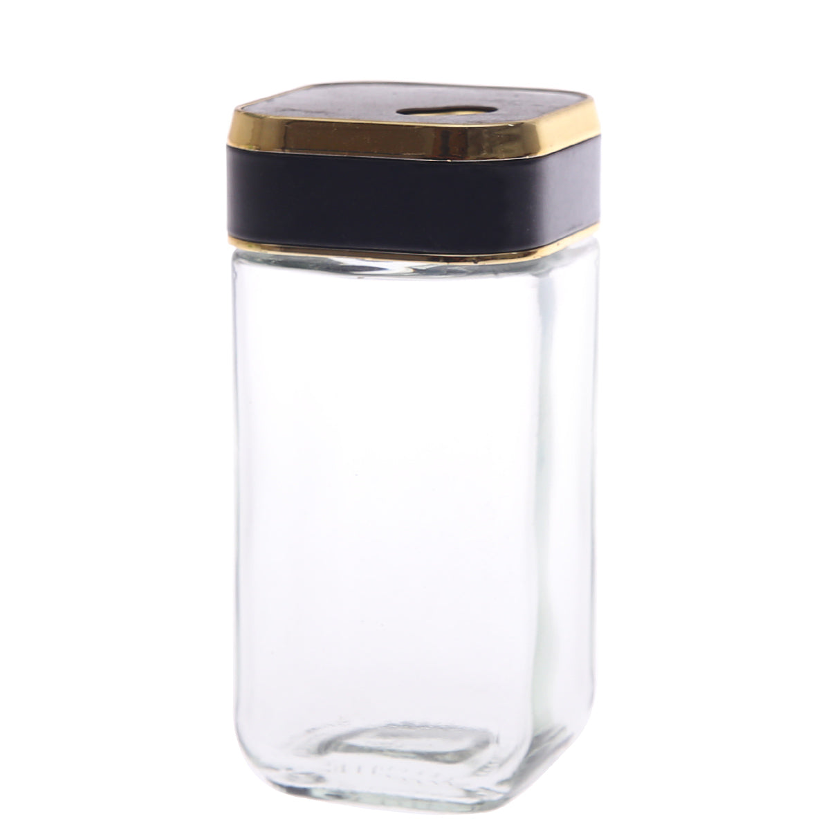 Organize your kitchen in style with this elegant glass spice bottle featuring a black and gold lid. Designed for both functionality and aesthetics, it’s perfect for storing and dispensing spices, herbs, and seasonings while keeping them fresh and easy to access.