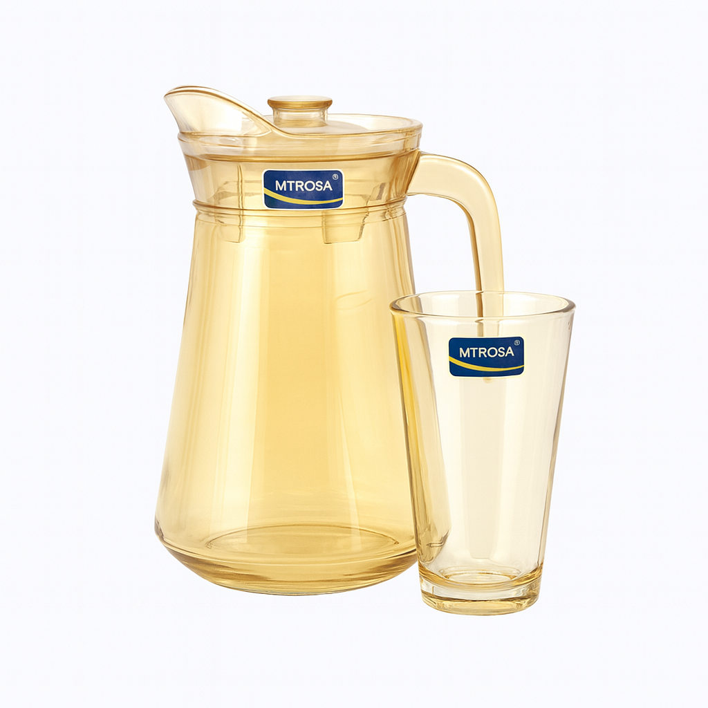 Add a warm, luxurious glow to your table with this elegant golden-tinted 7-piece water set, featuring a beautifully crafted 1.58 L jug and six matching 275 ml tumblers. Designed with a soft, translucent golden finish, this set brings a premium, stylish look to everyday use and special occasions alike. Perfect for serving chilled beverages, it enhances any kitchen, dining room or guest service setup with its refined charm.