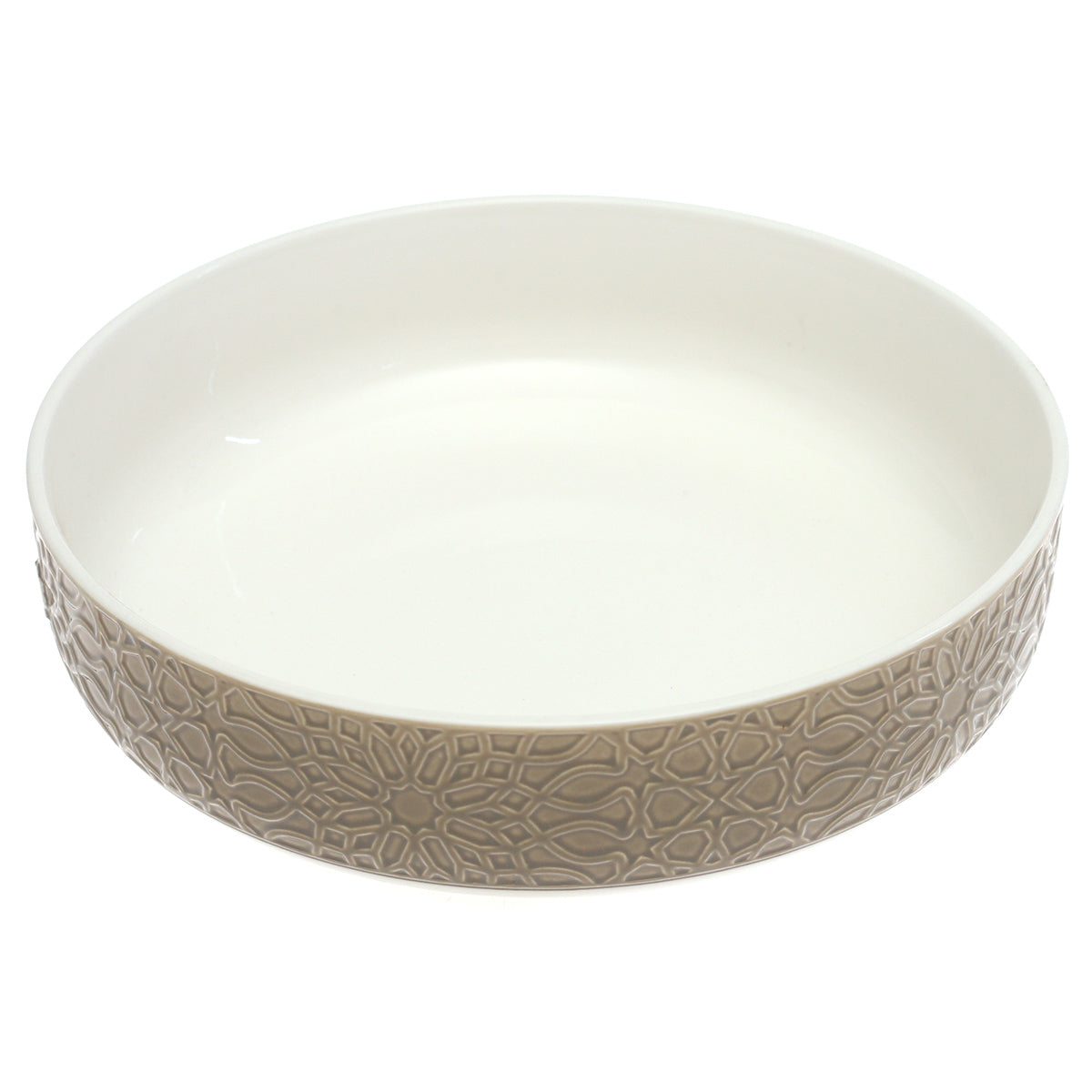 Serve generously and stylishly with this elegant 10.5-inch green ceramic serving bowl, designed to be the perfect centerpiece for your dining table. Featuring a smooth glazed interior and a beautifully embossed geometric pattern around the exterior, this bowl blends modern design with timeless appeal. The soft green tone adds a calm, natural touch that complements a wide range of table settings. Ideal for family meals or entertaining guests, this spacious bowl is perfect for salads, pasta, fruits, rice dishes, or shared sides.