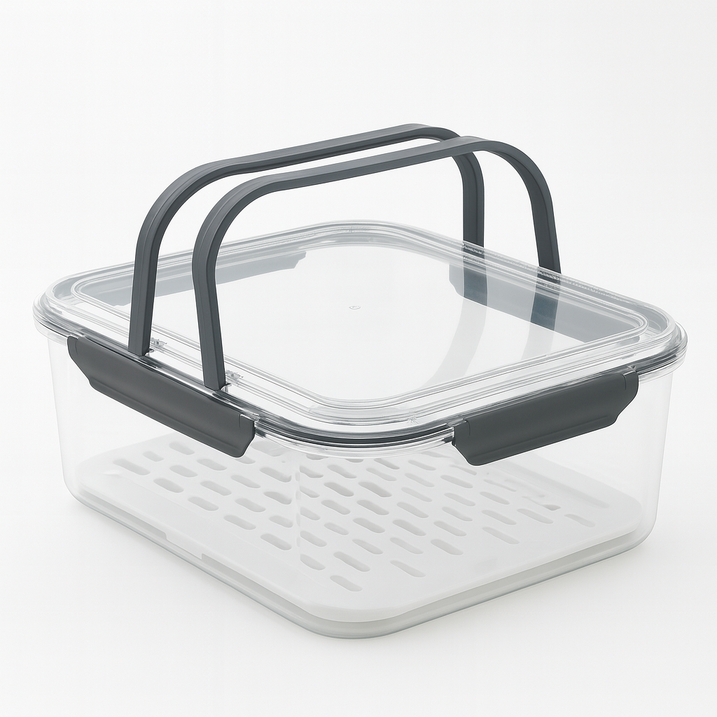 Keep your food fresh and neatly stored with this Grey Healthy Kitchen Storage Preservation Box, designed with a clear body and double carry handles for easy lifting. Perfect for organizing fruits, vegetables, leftovers, meal prep items and snacks, this box offers both visibility and convenience. Ideal for fridge storage, pantry organization and everyday kitchen use.
