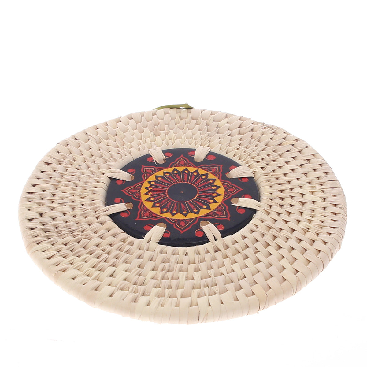 Bring artisanal elegance to your dining setup with this Handwoven Hot Plate Mat featuring a Red & Gold Mandala Design. Crafted from natural eco-friendly fibers and adorned with a bold mandala centerpiece, this trivet is both practical and decorative. Designed to protect your table from hot dishes, teapots, and serving bowls, it also doubles as a unique decorative accessory for your dining or coffee table.
