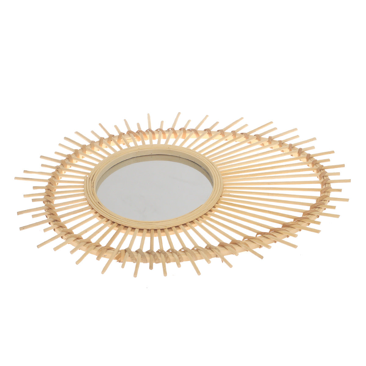 Add sculptural beauty and natural warmth to your décor with this Handwoven Natural Sunburst Mirror. Measuring 18 x 14 inches, this distinctive wall mirror features an oval glass center framed by radiating bamboo spokes that create a striking sunburst silhouette. The airy, handcrafted design brings depth and movement to your walls, making it an eye-catching accent for boho, coastal, Scandinavian, or earthy modern interiors. Perfect for living rooms, bedrooms, entryways, or feature walls, this mirror reflects light beautifully while doubling as functional wall art.
