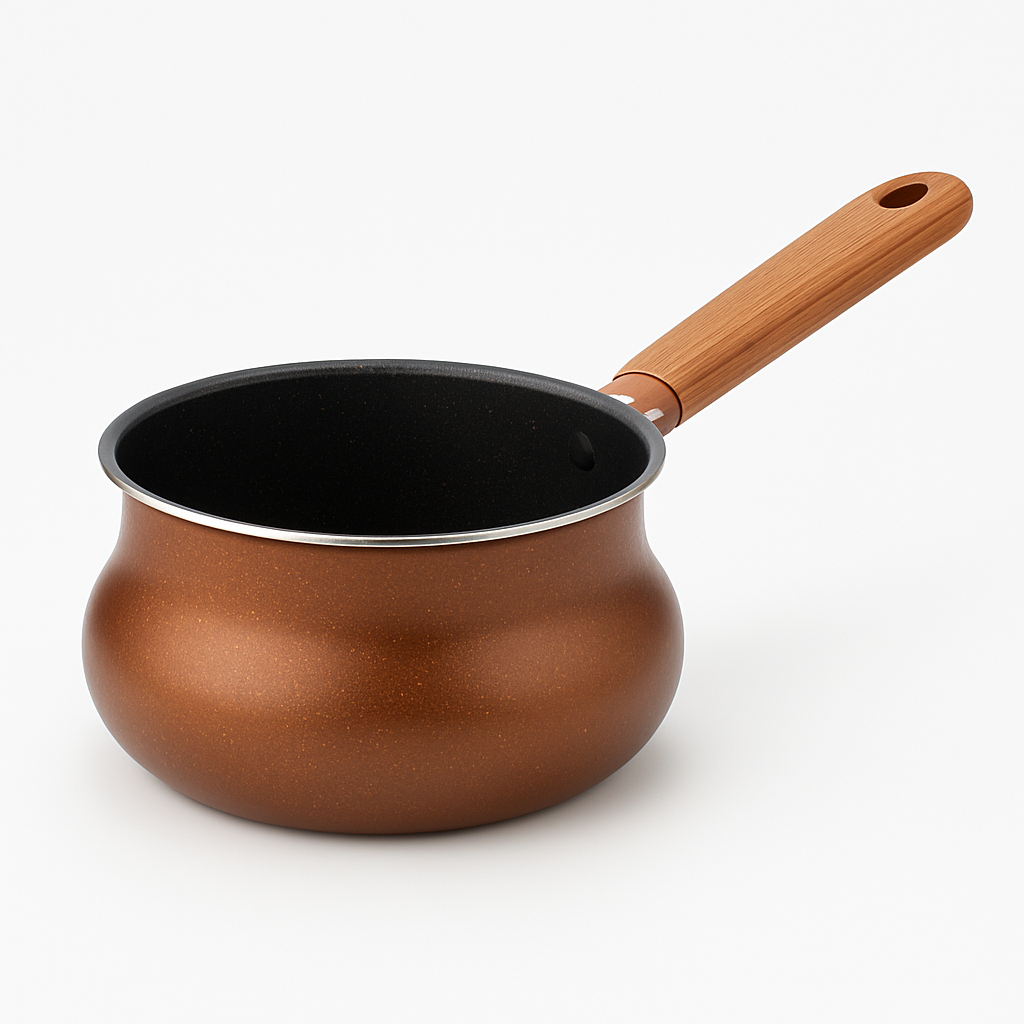 Heavy-Duty 10" Non-Stick Milk Pot with Even-Heat Base & Comfort Handle This heavy-duty 10" non-stick milk pot offers superior heat distribution and effortless cooking, ideal for boiling milk, preparing tea, heating liquids, or making small portions of soups and sauces. Its sturdy construction, smooth non-stick coating, and ergonomic handle ensure mess-free pouring and everyday convenience. Designed in attractive metallic tones, it’s a reliable and stylish addition to any kitchen.