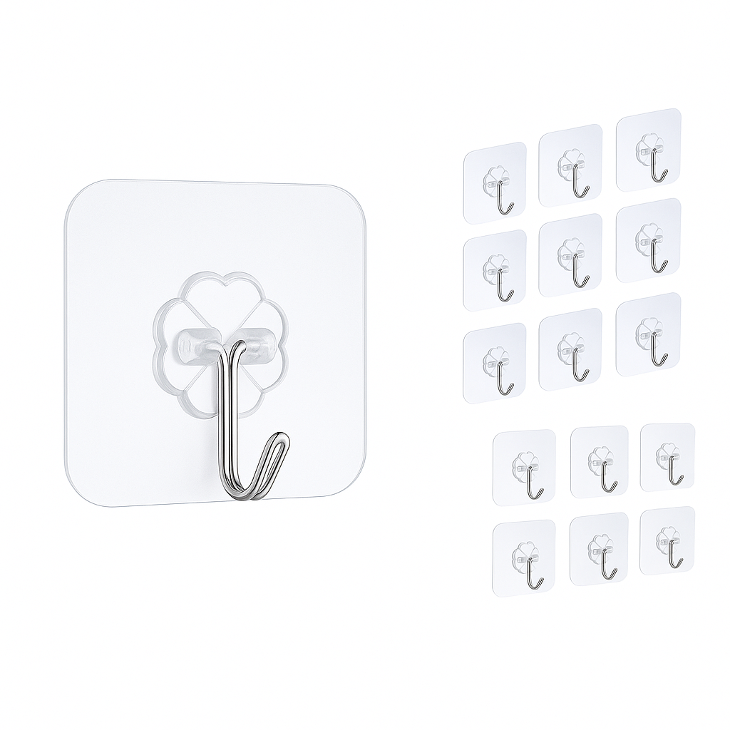 Organize your space effortlessly with this Hook Card Set, featuring strong self-adhesive wall hooks. Perfect for hanging kitchen tools, bathroom accessories, towels, keys, or lightweight décor items. The transparent design blends seamlessly with any wall or surface for a clean, modern look.